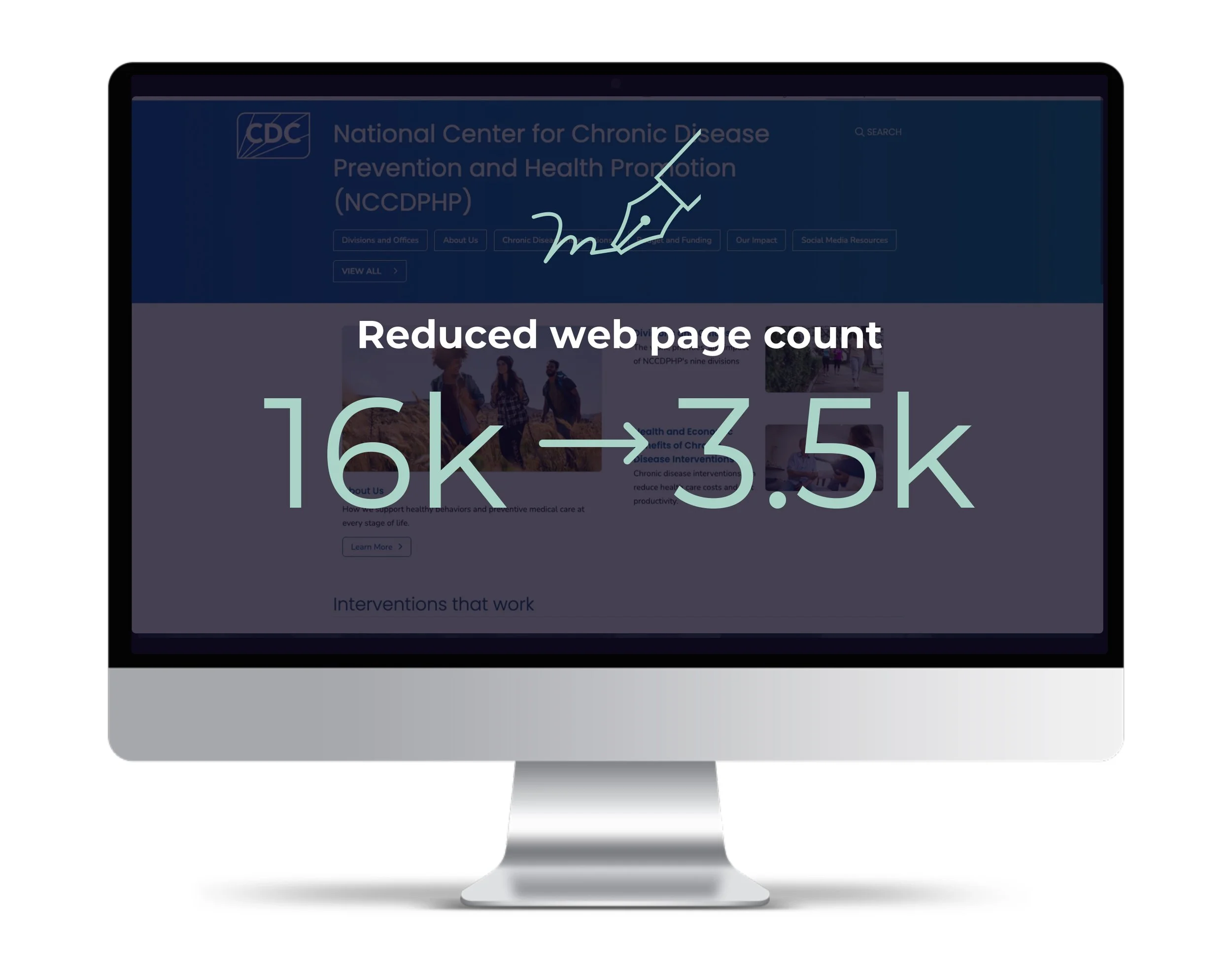 We reduced the number of NCCDPHP pages by 78% by eliminating duplication, implementing best practices in usability, design, and content strategy, and prioritized a consistent, accessible, and user-centered experience, making it easier for the public, partners, and professionals to find and comprehend essential health information.